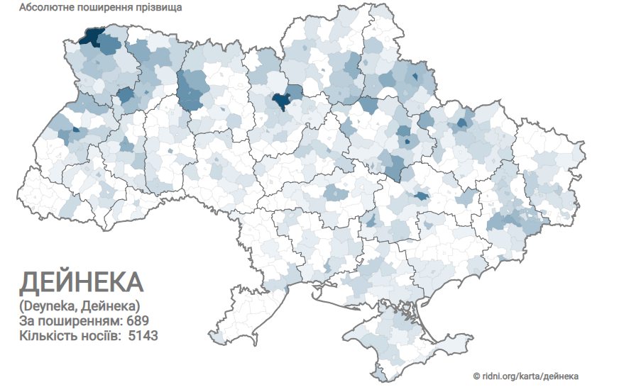 Прізвище Дейнека налічує 5143 носіїв та за поширенням займає 689 місце.
