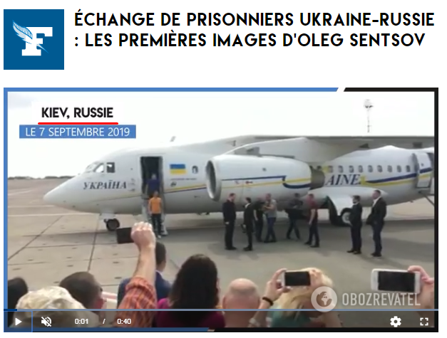 У сюжеті про українських політв'язнів з'явився напис "Київ, Росія". Таким чином, журналісти переплутали країни, або ж міста.