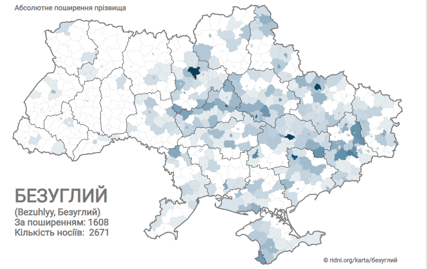 Козельщинський район на Полтавщині є найгустішим осередком прізвища, де на одного носія припадає 567 жителів.