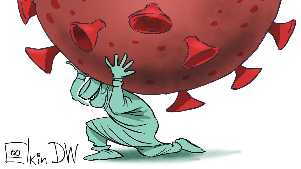 Титанічні роботу лікарів, яку вони виконують, намагаючись зупинити поширення коронавірусу SARS-CoV-2, зобразив на своєму малюнку відомий художник і карикатурист Сергій Йолкін.