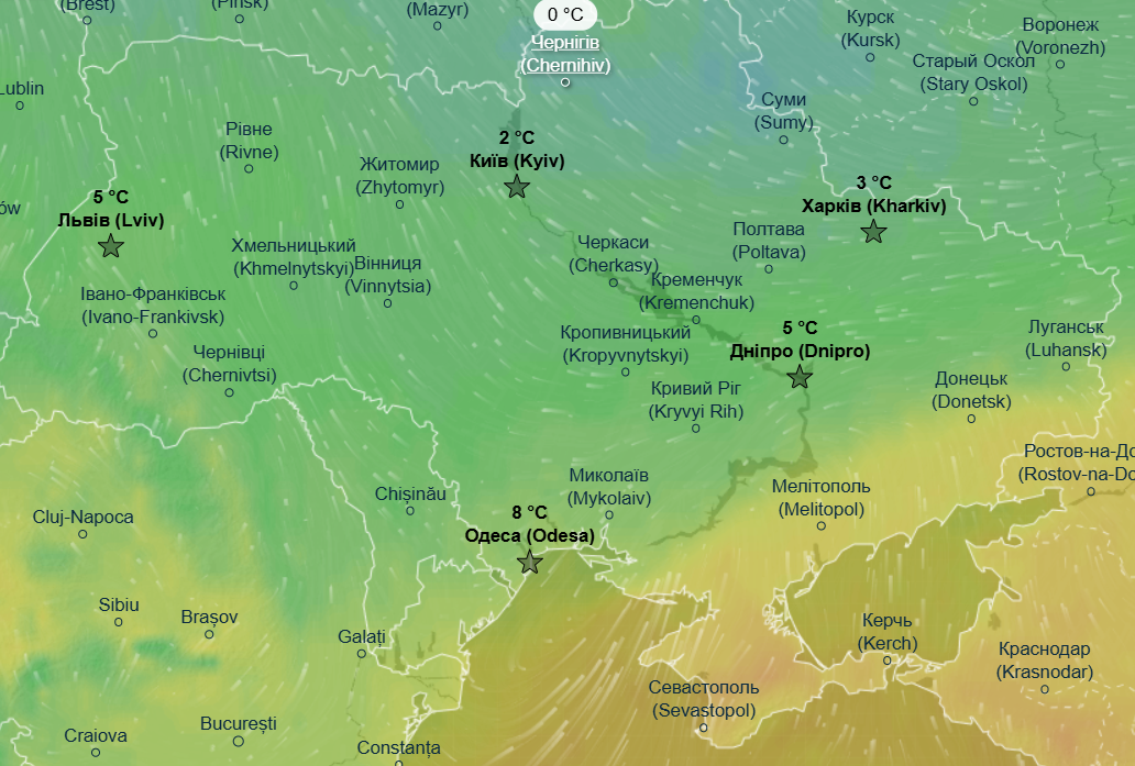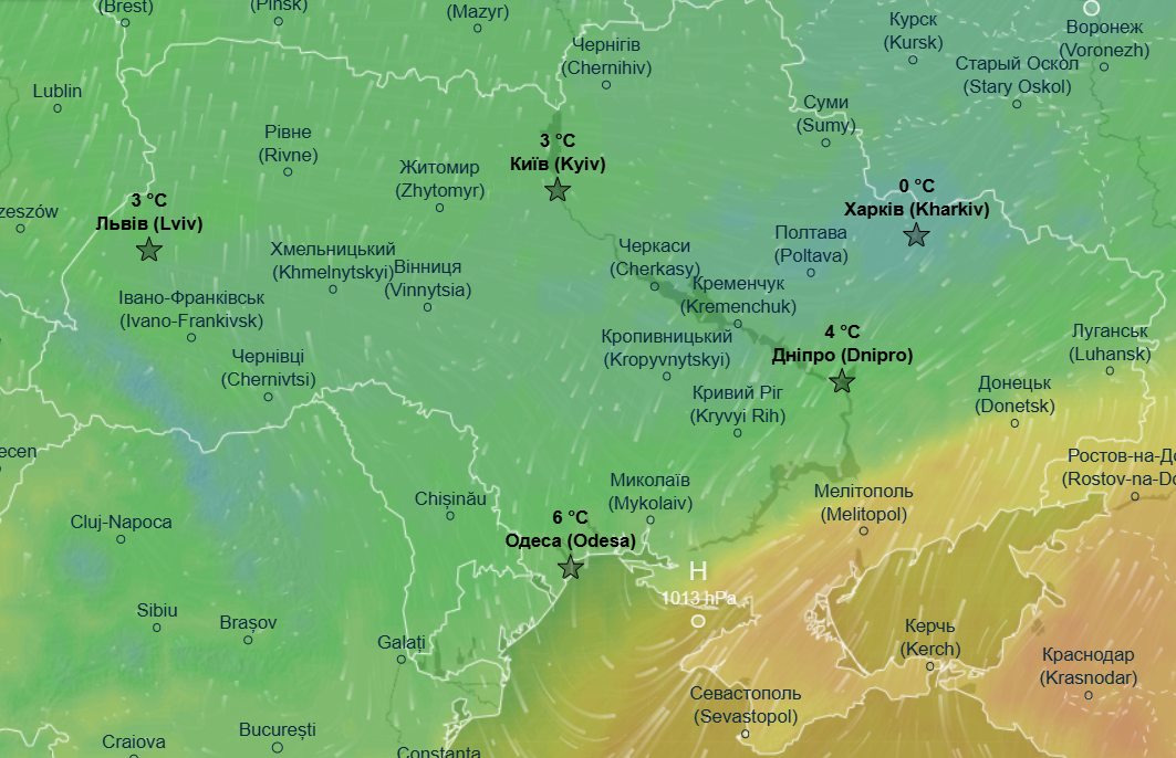У вівторок, 18 листопада, хвиля похолодання накриє західні, північні та деякі центральні області  - денний максимум складатиме +3...+6 градусів, а ввечері та в ніч на середу вдарять морози до -2 градусів.