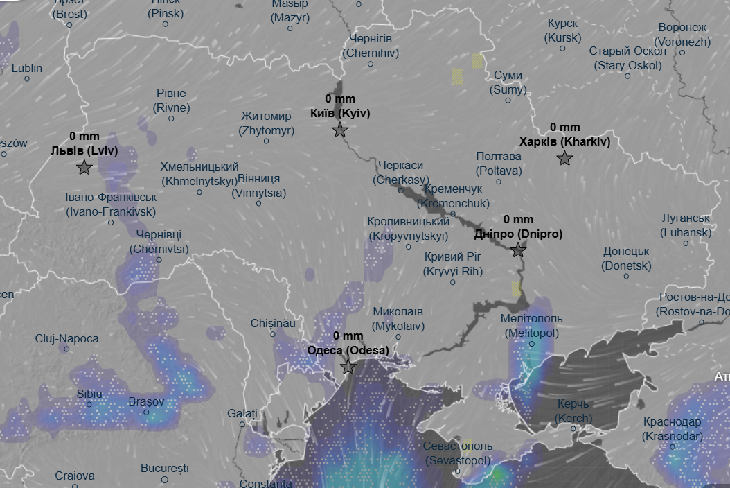 Впродовж доби снігопади, які прийдуть з заходу, накриють більшу частину території України, окрім східних областей, Сумщини та Чернігівщини. Та вже до кінця доби снігопади припиняться, лише невеликий сніжок пролітатиме на Одещині, Миколаївщині та в Запорізькій області.
