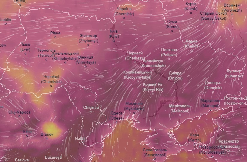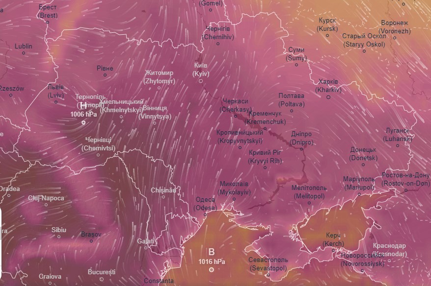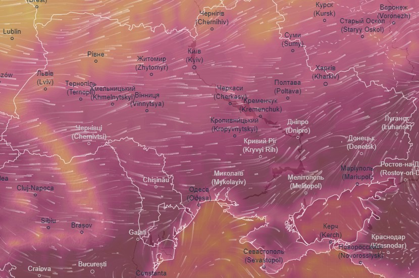 Про це свідчить прогноз на метеорологічному сайті Ventusky.