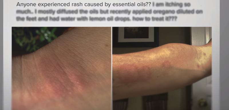 Не знаючи, що робити, Халук звернулася за порадою до груп поширення ефірних масел у Facebook. Коли вона запитала, чи могло роздратування шкіри бути викликане маслами, люди поспішили захистити їх.
