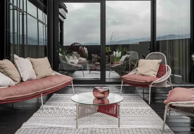 Окрім того - приватна відкрита тераса з садом, шезлонгами, джакузі, та неймовірним панорамним видом на 360 градусів. На даху розташована сауна, санвузол, спортзал, закрите склом джакузі.