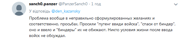 "Сорян, хлопці, все на Сирію пішло, а "російський Донбас" нехай живе тепер в лайні і руїнах. Йому ж ніхто нічого не обіцяв", - додав Казанський.