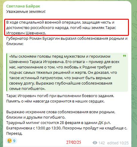 "На війні в Україні загинув Тарас Шевченко 2000 року народження. Але є нюанс – це окупант із Саратовської області РФ. Це ж ким треба бути, щоб назвати сина Тарас Шевченко і виховати його російським нацистом, який ненавидить Україну...", - написав Казанський.
