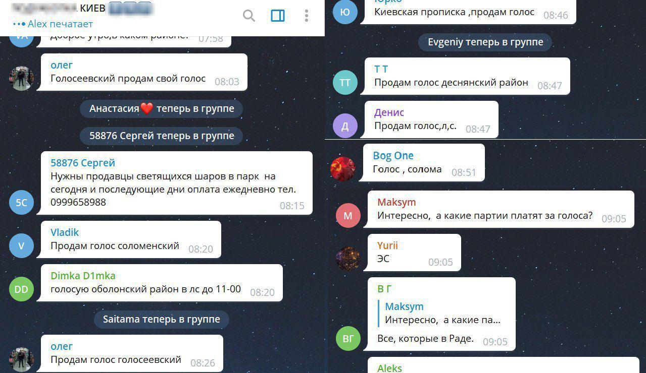 Незважаючи на традиційно невисоку ранкову явку виборців, деякі кияни вже влаштували розпродаж своїх голосів. У чаті соцмереж вони публікують оголошеня "Продам голос", вказуючи при цьому район столиці.