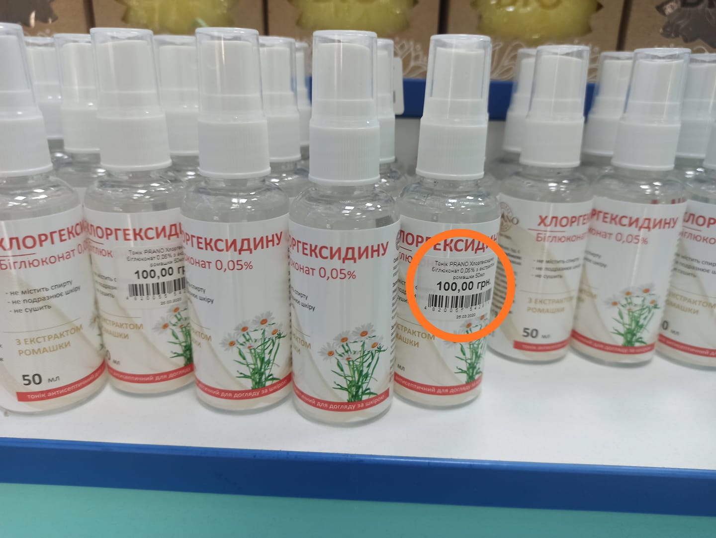 Автор звернув увагу на антисептик в одній із аптек Білої Церкви, на ціннику вказано, що він коштує 100 гривень. Для такого маленького флакона це дійсно багато.