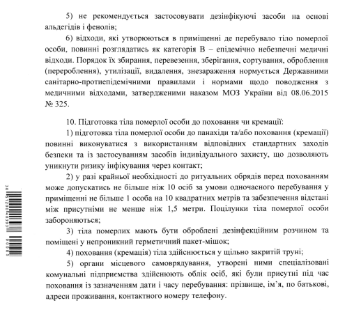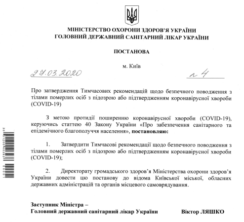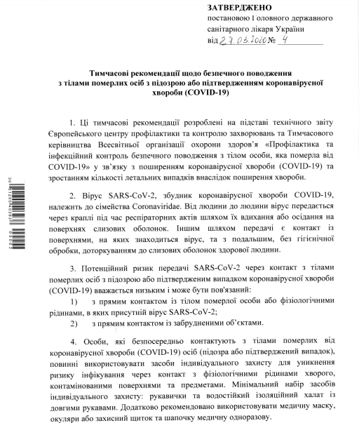 У зв'язку з пандемією коронавірусу МОЗ встановило правила для похорону померлих від COVID-19.