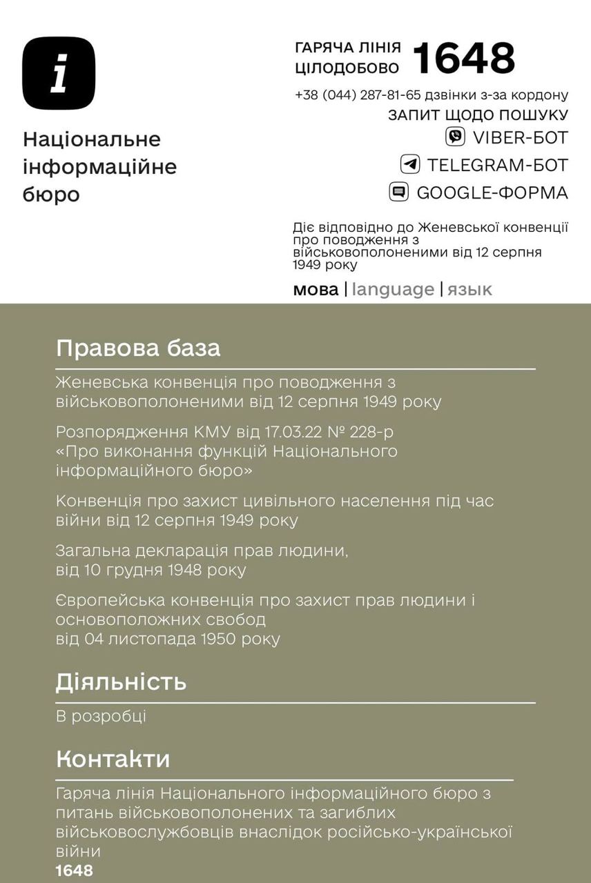 Рідні та близькі українських військових, які потрапили в полон, зможуть вносити дані про своїх родичів і близьких за посиланням. Він зазначив, що це – основна умова для того, щоб існував офіційний облік військовополонених.