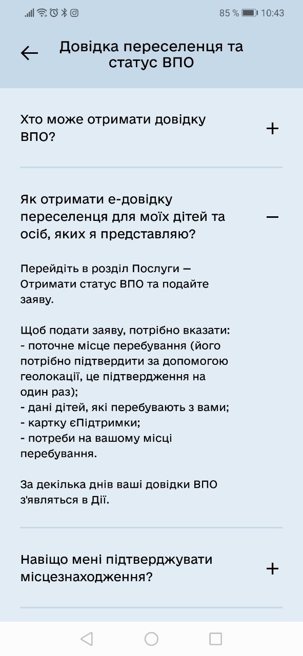 - натиснути "Отримати статус ВПО"