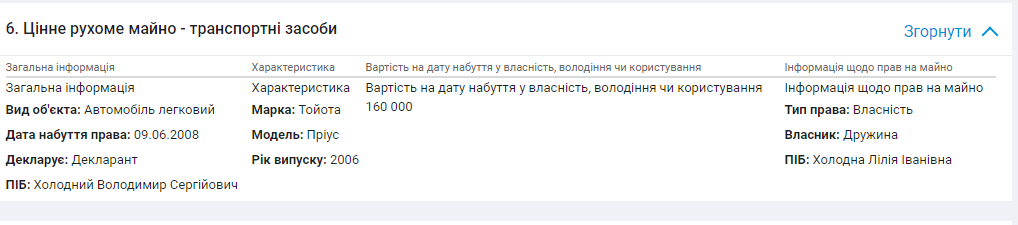 Машина, якою скоїли наїзд на дівчат, належала його дружині Холодній Лілії Іванівні. Ці дані є в декларації Холодного.