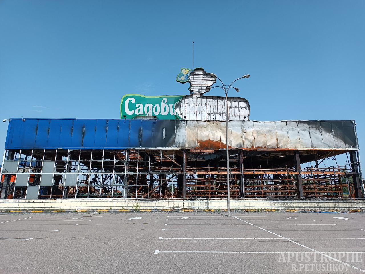 - будівельному супермаркеті "Епіцентр" на вулиці Шевченка, де через обстріли сталася пожежа та згоріли тисячі тонн полімерних матеріалів;