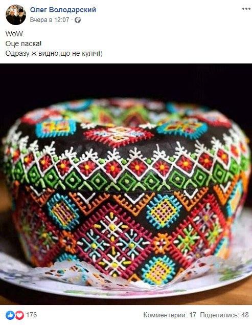 На кожному фото присутні великодні атрибути - паска і яйця. Кожен показує, як в цьому році він прикрасив свою пасхальну корзину.