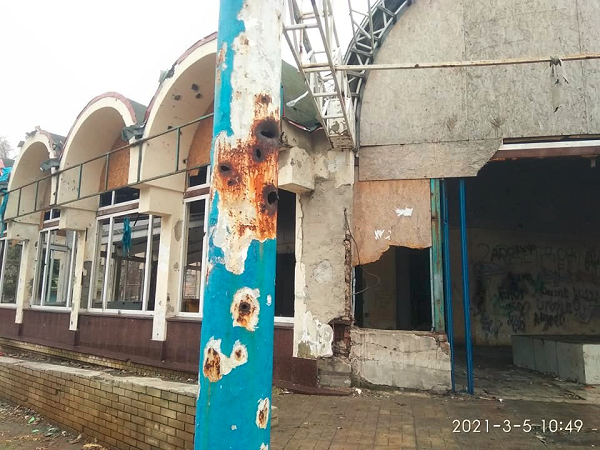Житлові багатоповерхівки на околицях міста вражають своїм виглядом - там на балконах немає вікон, деякі затягнуті плівкою, приміщення колишніх розважальних закладів розкрадені.