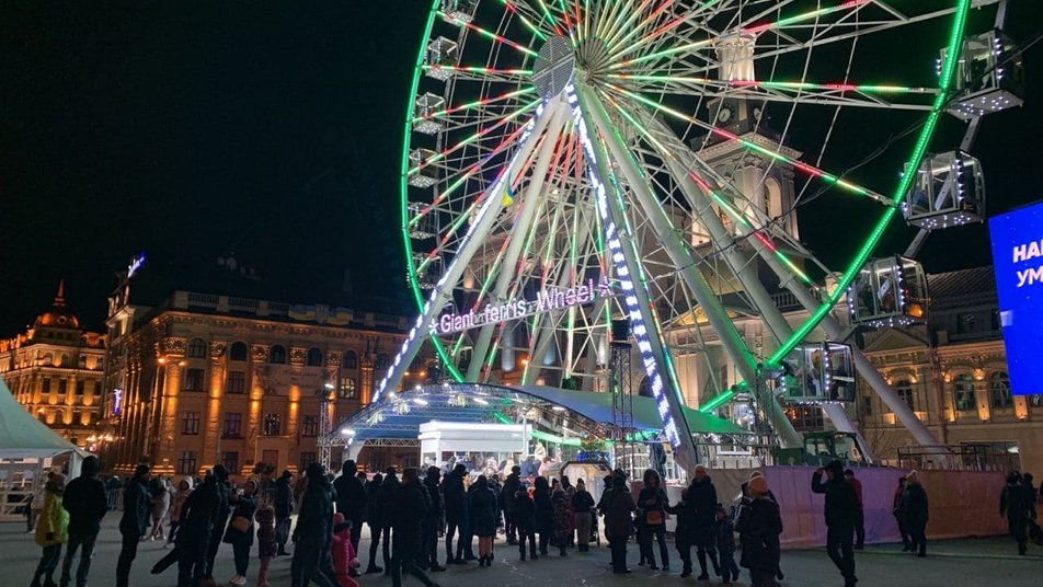 Як повідомляє "Суспільне", в українській столиці на Контрактовій площі продовжують працювати колесо огляду і каток. Увечері в суботу, 9 січня, тут знаходилося близько тисячі осіб, в кафе шикувалися черги відвідувачів, не дотримуючись при цьому соціальної дистанції.