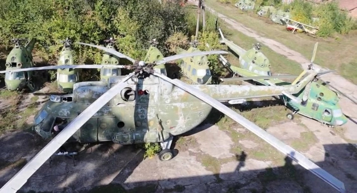 Тут стоять винищувачі з червоними зірками на крилах, військові вертольоти, де збереглися кнопки з написом "кулемет", кукурузник і Ан-24. Всього кілька десятків одиниць техніки.