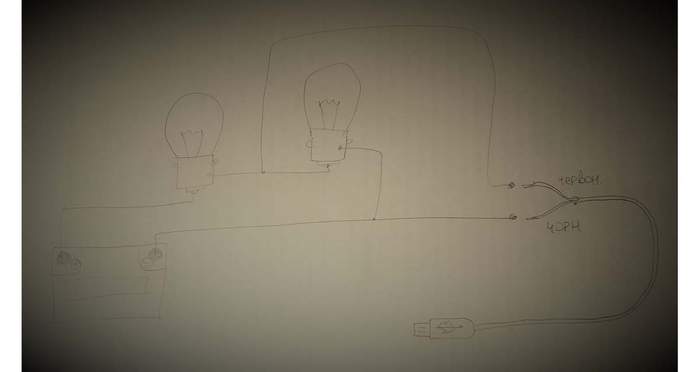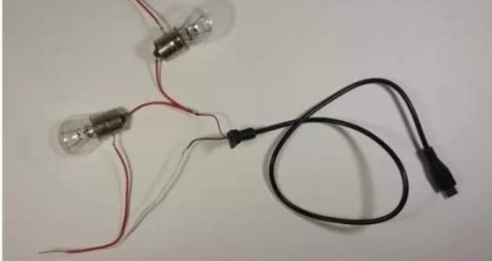 Зовнішні контакти (мінус) треба примотати в кілька шарів до зачищеного дроту, а також підсилити контакт за допомогою ізоляційної стрічки. Водночас центральний контакт (плюс) під'єднується до дроту, як і до лампочок.