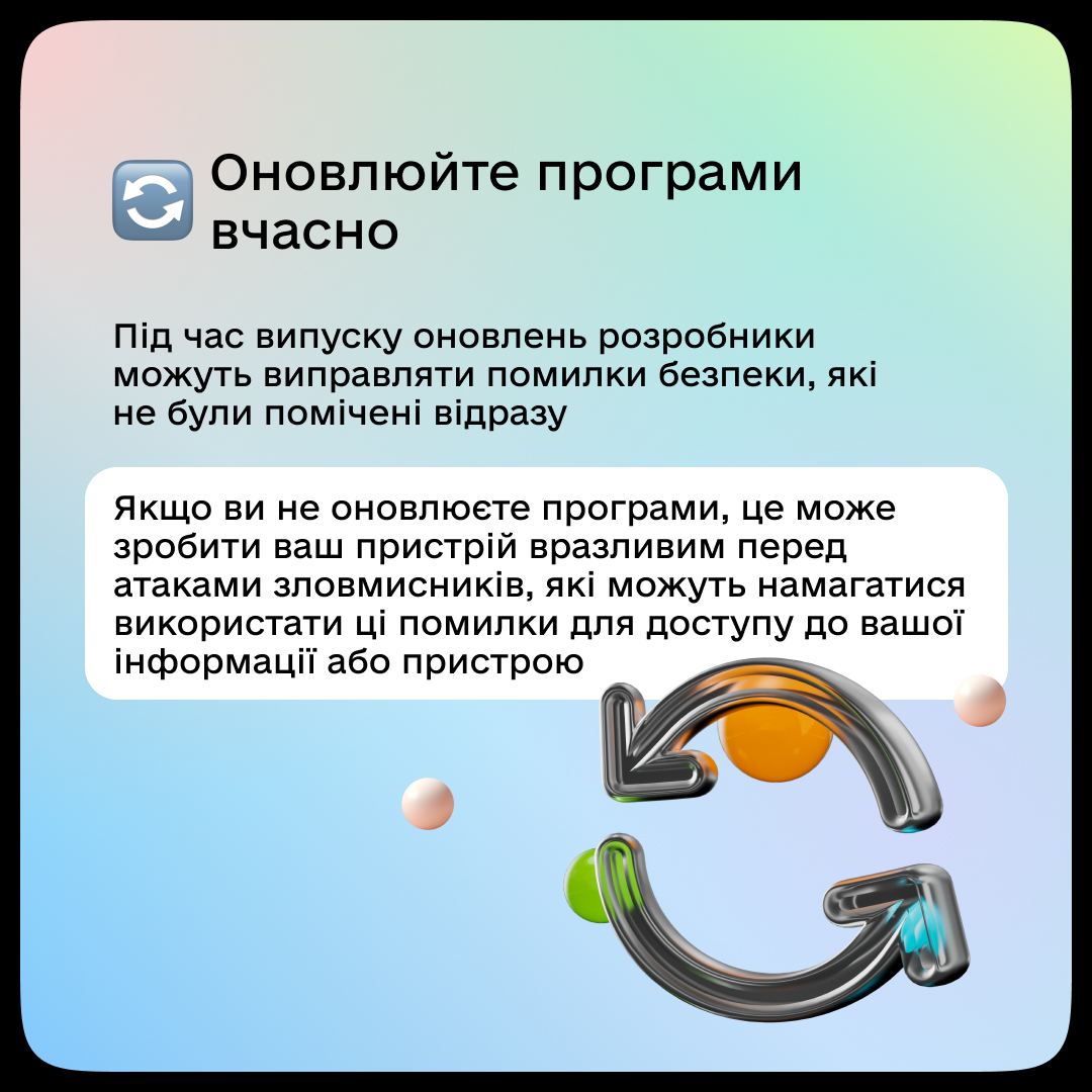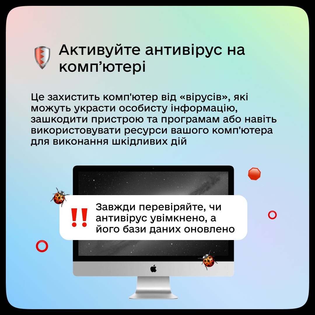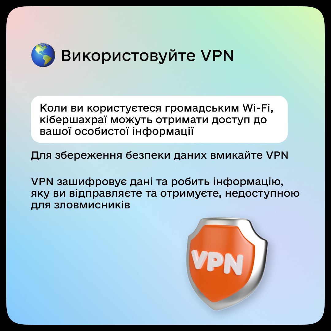 У Мінцифри дали п'ять дієвих порад від зламу техніки. Там зазначили, що двофакторна автентифікація, VPN та антивіруси - це необхідність для кожного, хто користується інтернетом, адже неперевірені програми або незахищені Wi-Fi-мережі можуть дуже нашкодити.