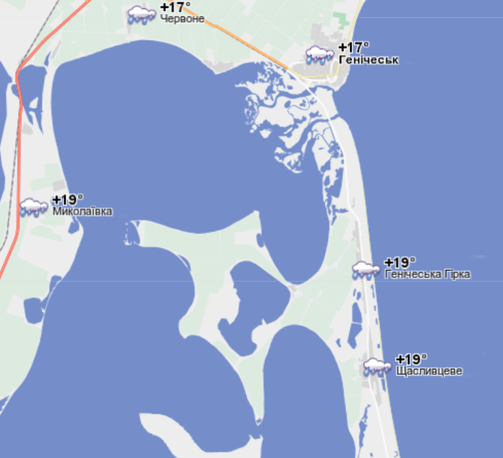 На курортах поблизу Маріуполя 17 червня очікуються дощі з грозами, температура підніметься до +22. Вода прогрілася до +20.