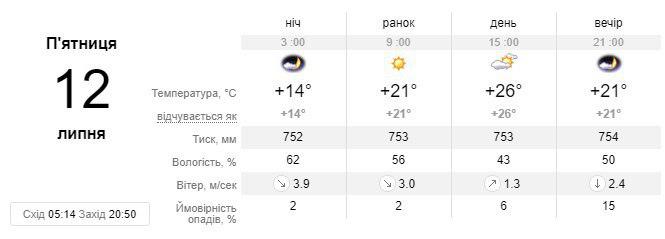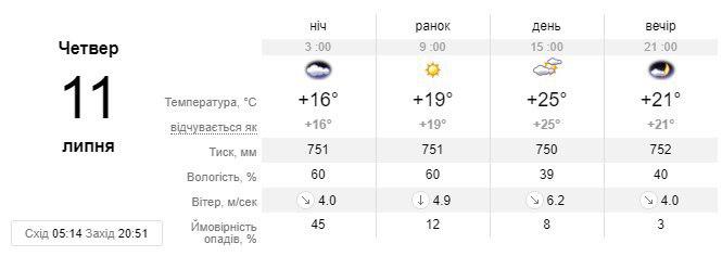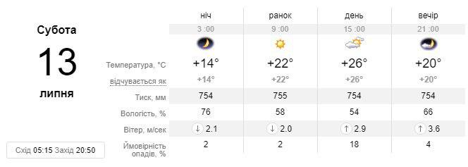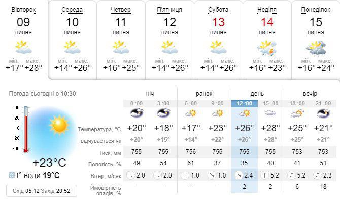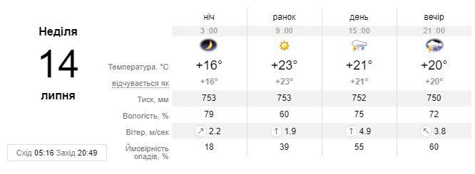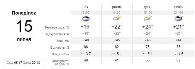 Однак уже в неділю, 14 липня температура різко знизиться - до 23 градусів і з обіду почнуться дощі. Також опади, на цей раз з грозами будуть в понеділок, 15 липня, температура очікується на рівні 22-24 градусів вище нуля.