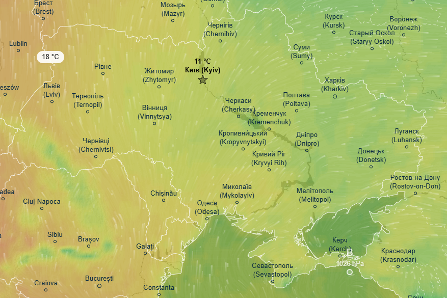 Синоптики погодного радара Ventusky прогнозують, що теплі атмосферні маси почнуть заходити на територію України вже увечері суботи, 12 квітня: в західних областях та на Закарпатті прогнозується до +11°.
