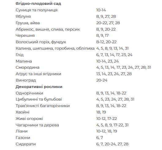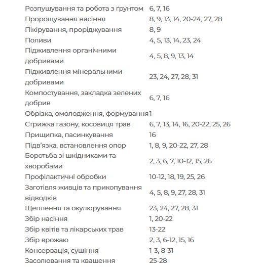 Несприятливі дні для посіву, посадки і пересадки будь-яких рослин: 1-3, 15, 16, 25, 26, 29, 30 серпня.