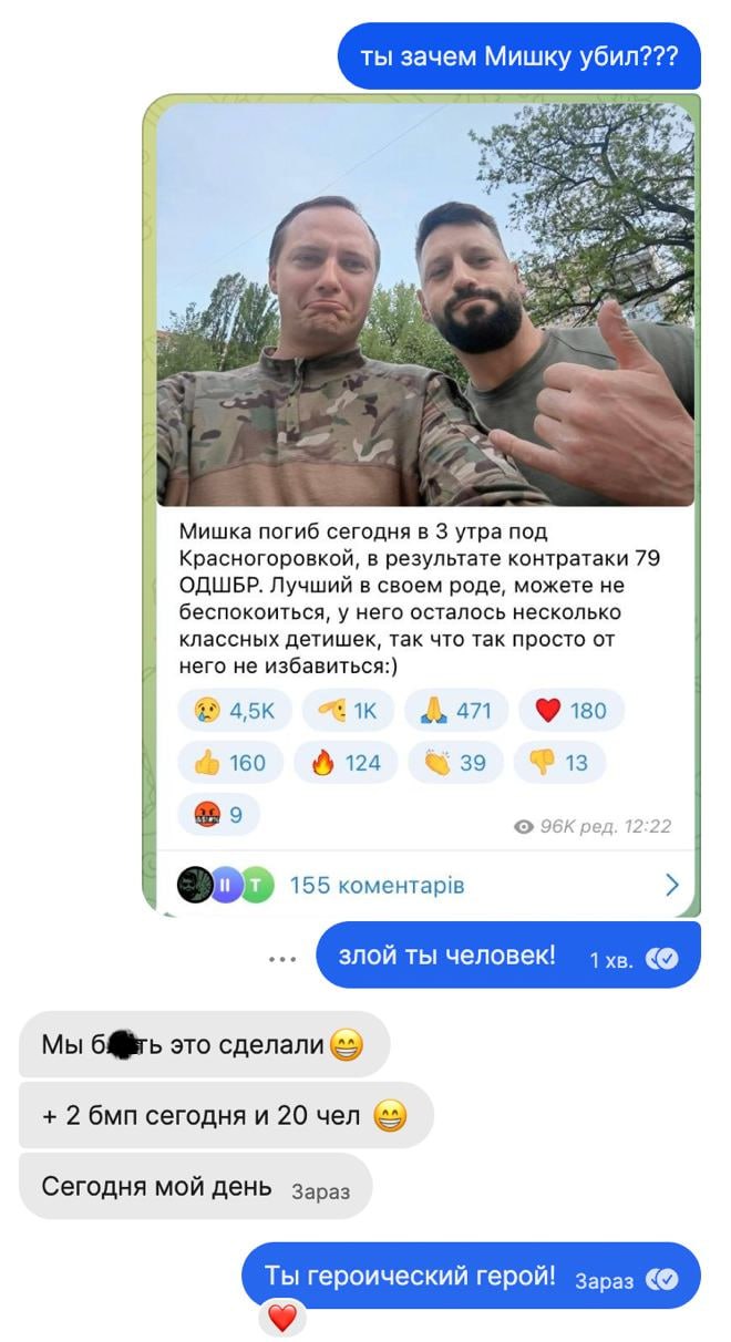 Раніше пабліки написали, що воєнкор загинув поблизу Красногорівки Донецької області. Його ліквідувала 79-та окрема десантно-штурмова бригада.