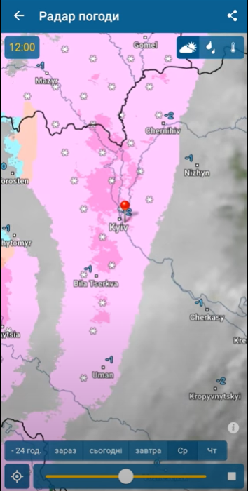Про це повідомляє "Апостроф" з посиланням на дані додатку "Радар погоди".