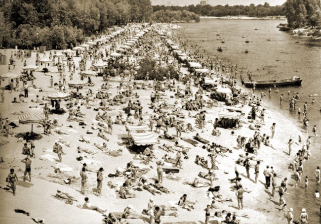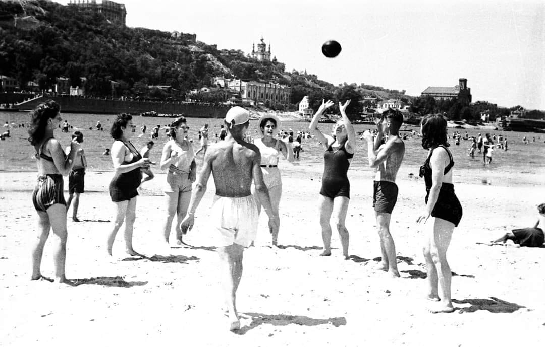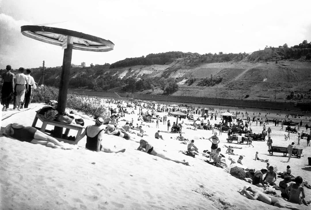 Мине декілька тижнів і почнеться літо – пора сонця, відпочинку і пляжів. Збереглось чимало фотографій київських пляжів, датованих минулим століттям.