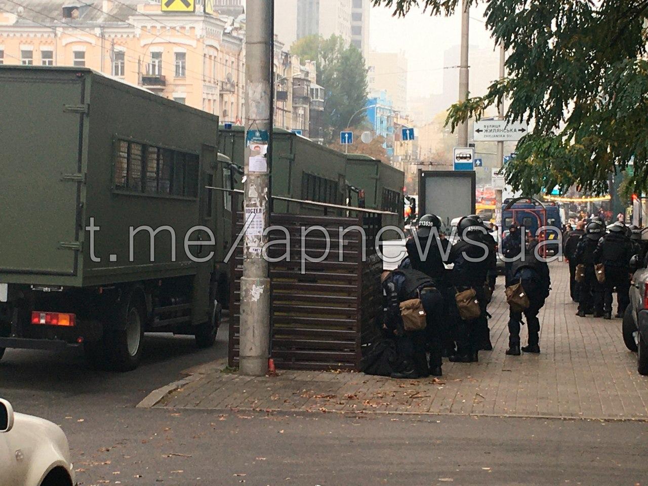 Правопорядок охороняють спецназівці, біля місця проведення акції припарковані автозаки.