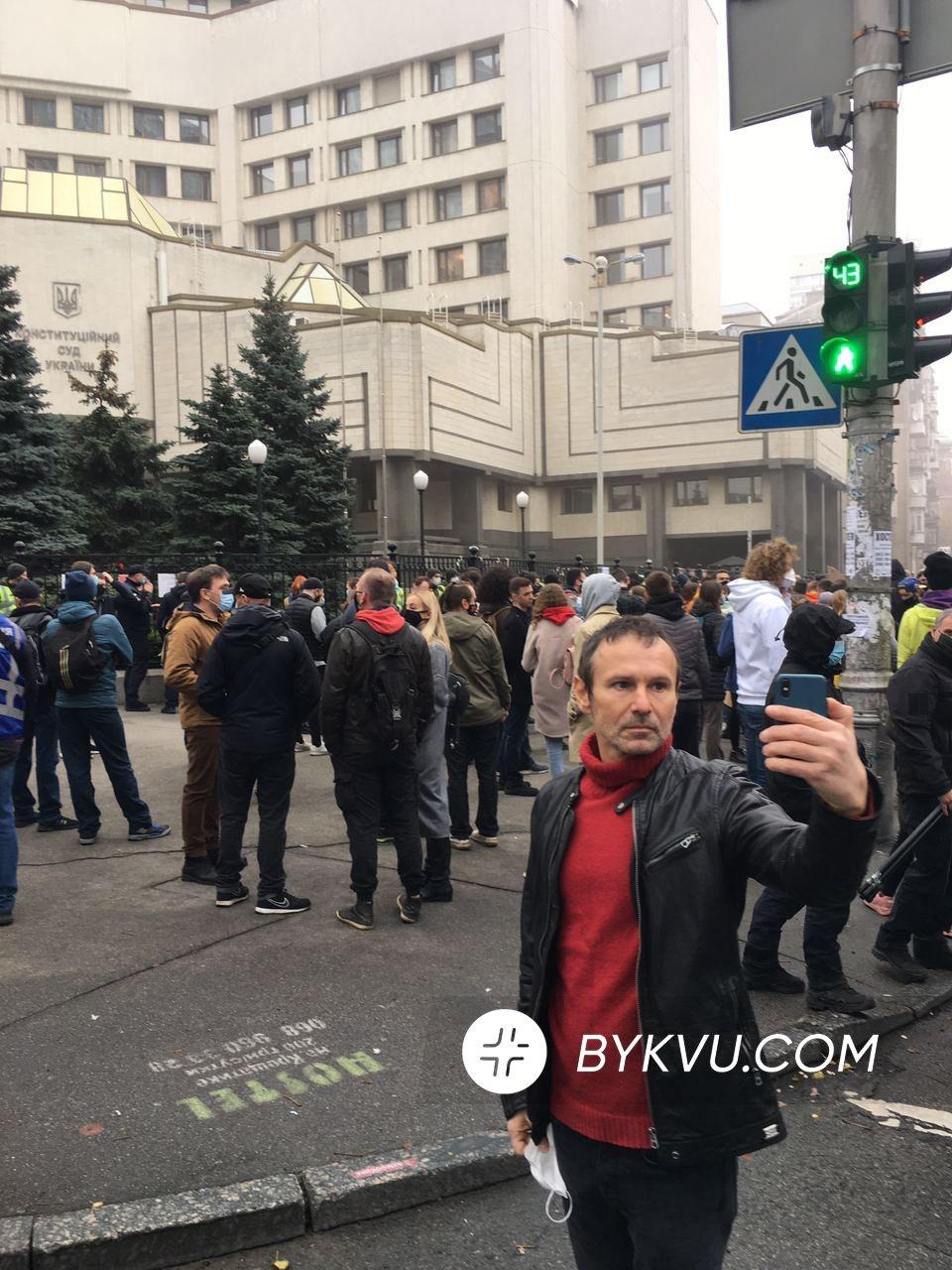 Також на акції було зауважено колишнього народного депутата, співака Святослава Вакарчука, який робив селфі на тлі подій, що відбуваються.