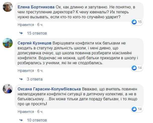 "Я вважаю ви здогадуєтесь для чого директор намагається провести такi збори? Директор таким чином заручається пiдтримкою заангажованих батькiв, i чинить тиск на "невигiдних батькiв" ... З цiєю мамою це вже третiй конфлiкт, де вона ображає безпосередньо мою дитину і їй це сходить з рук. Я допускаю, що вона це зробила з бажанням помститися моїй дитині та родині, бо попередні рази я також намагалася захистити свою дитину. Цього разу я двічі докладала зусиль, аби поспілкуватися з мамою знов, але вона також уникала зустрічі і діалогу", - пише автор.