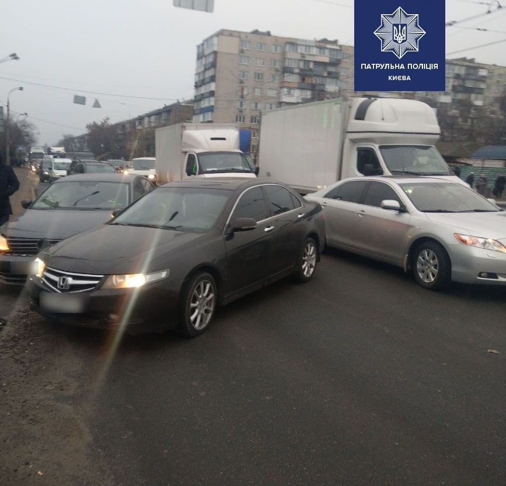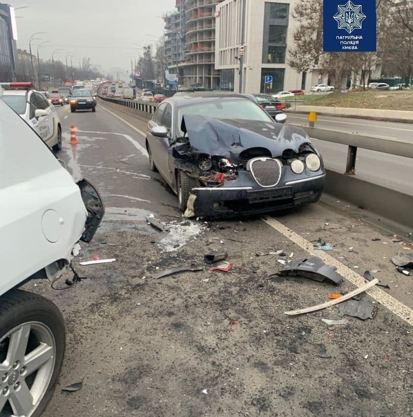 Багато аварій сталося, як в місті, так і на трасах біля української столиці. Зокрема, ДТП трапилися на Одеській та Ірпінської трасах, а також в Боярці і на вулицях Богатирській, Привокзальній, Дружби народів в Києві.