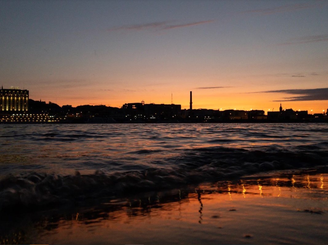 На набережній острова часто буває багато народу, але якщо не лінуватись і пройти далі від Пішохідного моста, можна знайти багато приємних локацій і милуватися заходом сонця біля води.