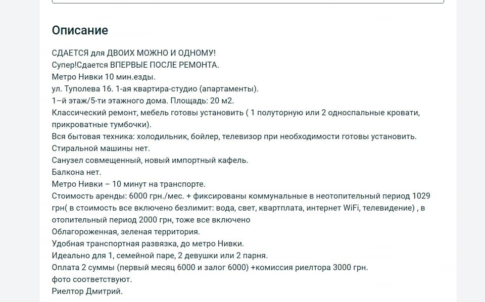 У Києві в 40 хвилинах ходьби від станції метро Нивки за 6 тисяч гривень на місяць, плюс комунальні платежі, здається дуже маленька квартира, в якій немає навіть плити для готування.