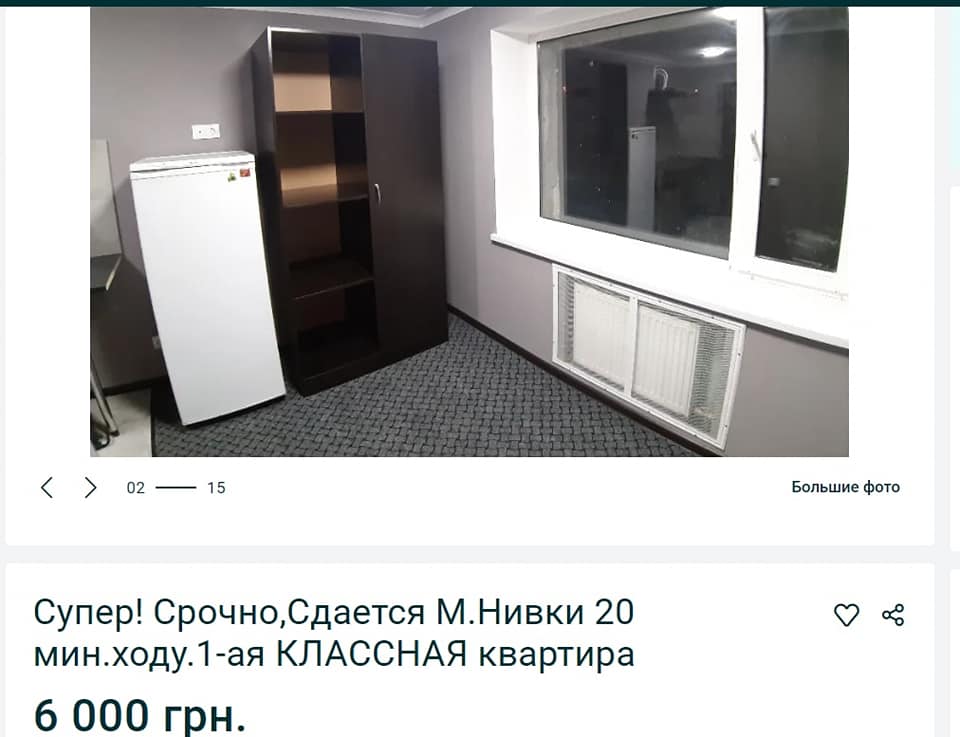 "За всю цю радість в 40 хвилинах від Нивок власник просить 2000 комуналки, 6000 застави і 6000 плати за місяць. І ще 3000 ріелтору. Разом, відразу на стіл 17 000 гривень. За коробку від вівсянки в яку навряд чи вміститься мій кед 47- го розміру", - пише Спірін.