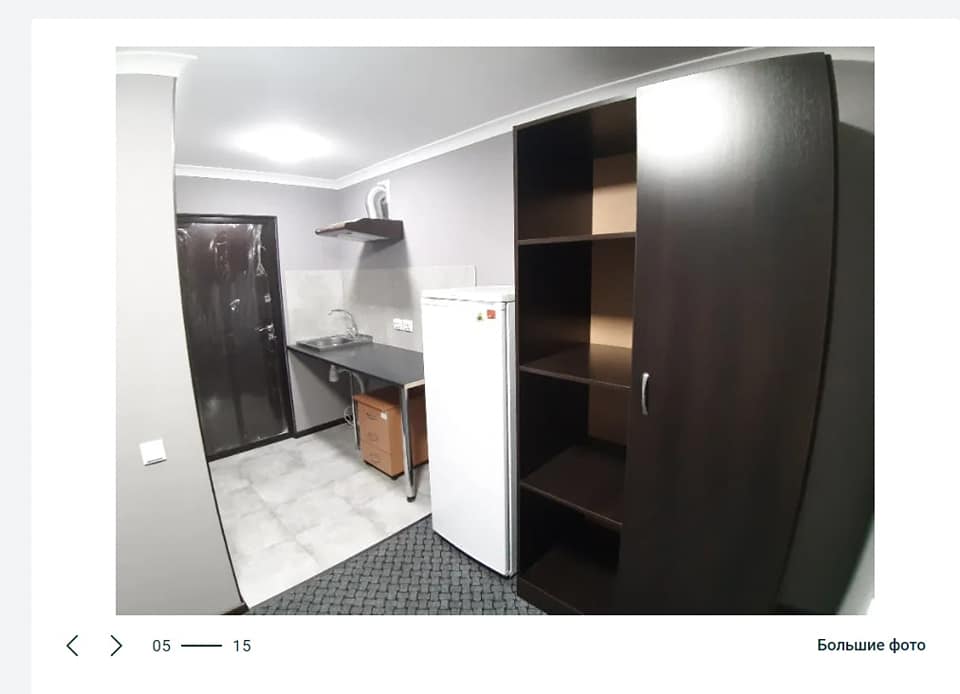 Власник позиціонує своє житло як "смарт квартиру студіо". У ній є раковина, унітаз, душ, тумбочка з трьома ящиками і для чогось витяжка. Навіщо вона - загадка, адже ніякої плити і місця для готування немає. Господар квартири зазначив, що житло - для двох, але можна жити і одному.