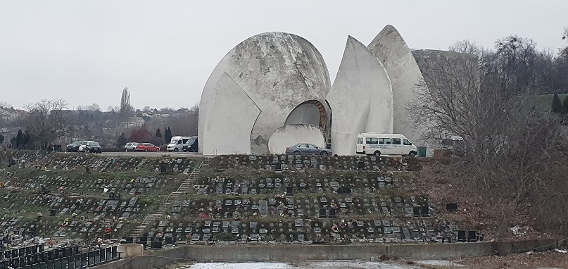 У середу, 9 грудня, тут було досить людно, біля ритуального будинку стояли припарковані машини. Підготовлені до кремації труни складені штабелями з боку чорного ходу.
