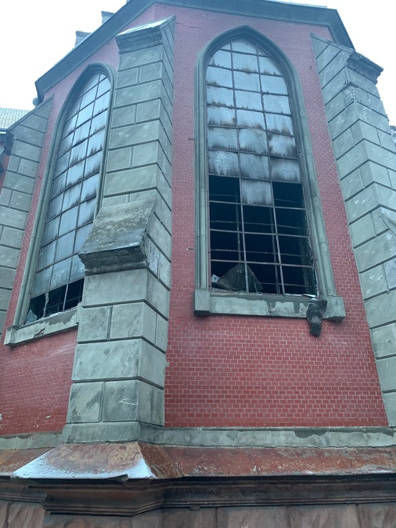 "Через вибиті вікна всередину потрапляють і сніг, і дощ, мокнуть стіни. Щоправда, в соціальних мережах з'явилися новини, що влада має намір "відреставрувати" костел до кінця цього року. Проте ця інформація має трохи спільного з реальністю, оскільки "реставрацією" називають протиаварійні роботи, а саме прикриття вікон фанерою та усунення наслідків пожежі", - зазначили у прес-службі.