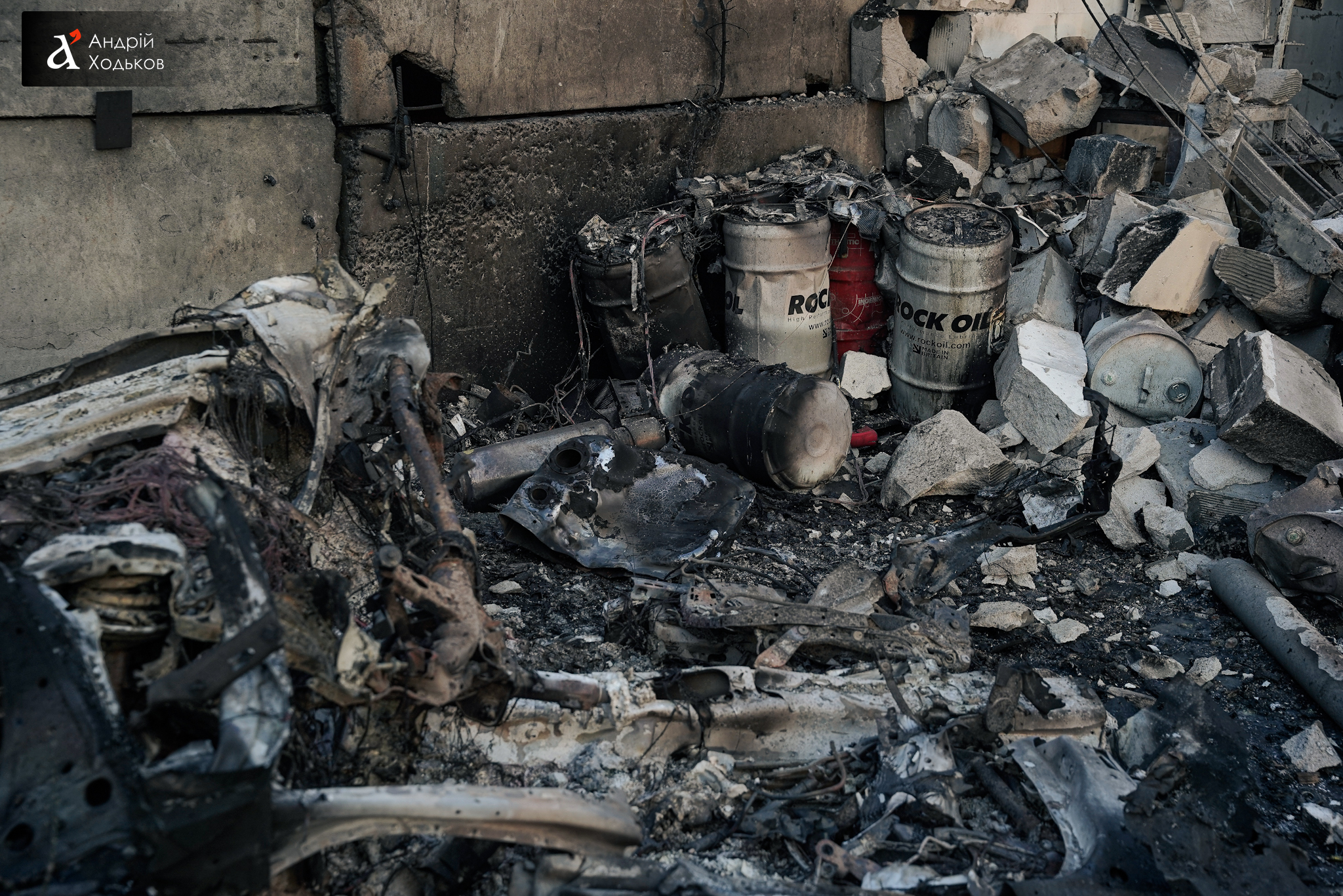 - У Дніпровському районі через падіння фрагментів БпЛА виникла пожежа на території гаражного кооперативу, загорівся бензовоз на стоянці. Також пошкоджено вікна у багатоквартирному житловому будинку.