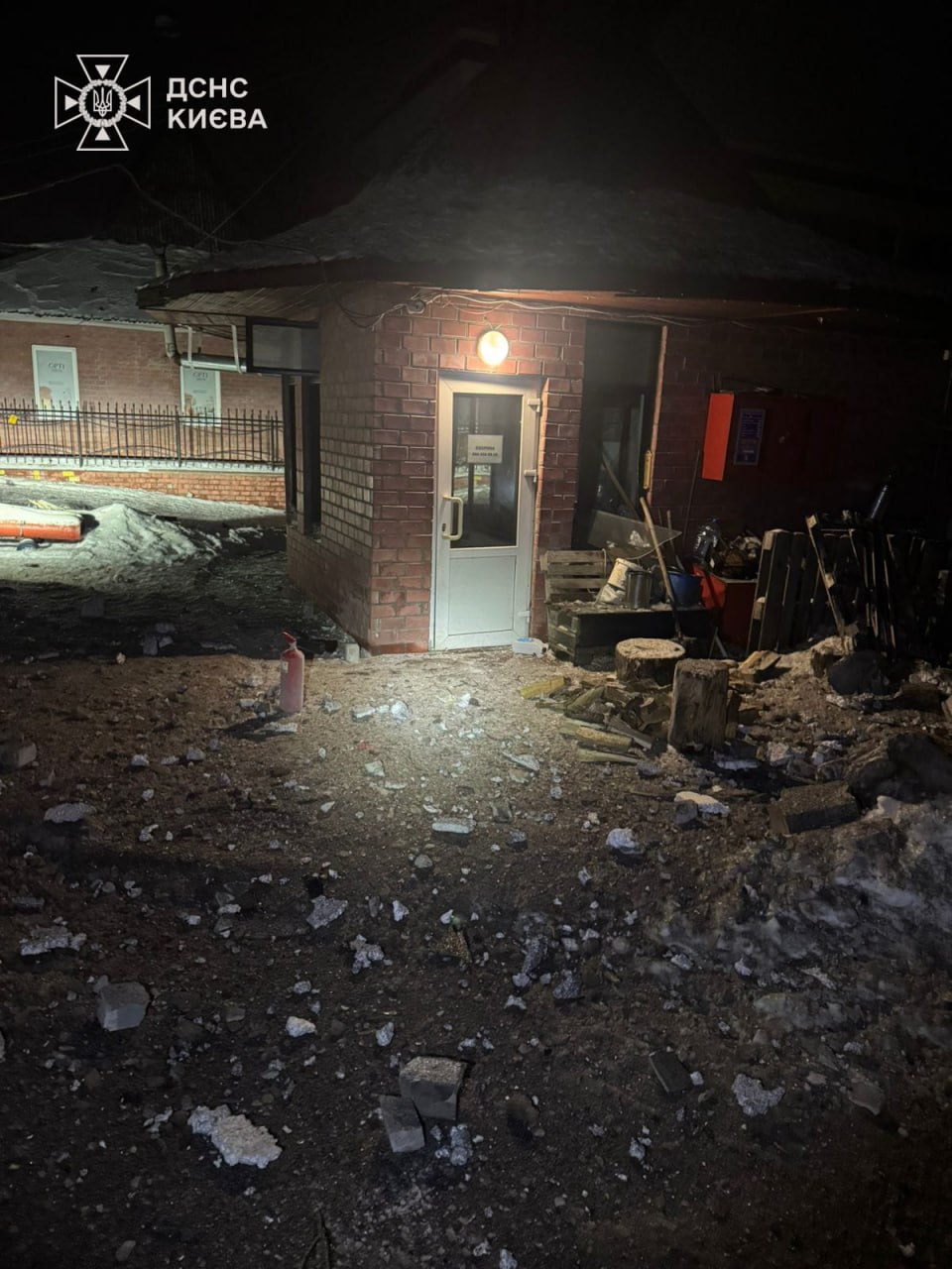 У ніч на 28 січня під час повітряної атаки на Київ у Голосіївському районі зафіксовано падіння уламків безпілотних літальних апаратів. Унаслідок інциденту пошкоджено покрівлю багатоповерхового житлового будинку та вибито вікна, також уламки впали на проїжджу частину.