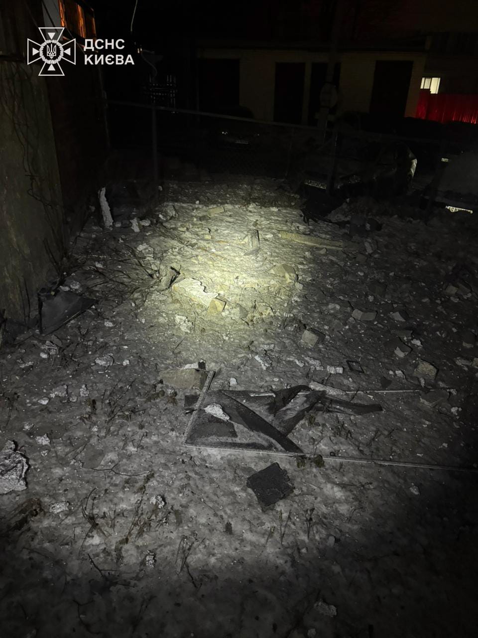 Повідомлення про роботу сил протиповітряної оборони в столиці з'явилися о 1:24. Згодом стало відомо, що у Голосіївському районі зафіксовано наслідки падіння елементів збитих БпЛА. Спочатку надходила інформація про займання на даху нежитлової споруди, проте пізніше ці дані було спростовано.