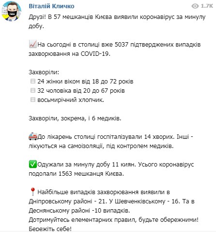 Одужали за минулу добу 11 киян. Всього коронавірус подолали 1 563 жителя Києва.