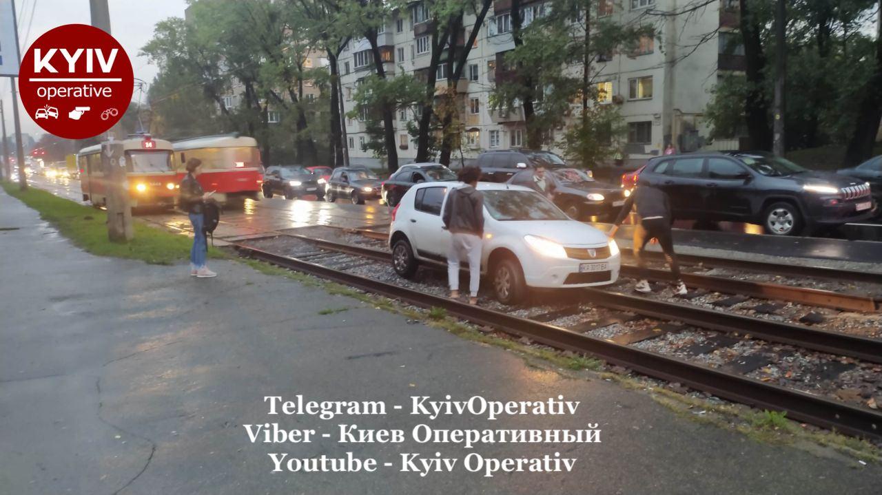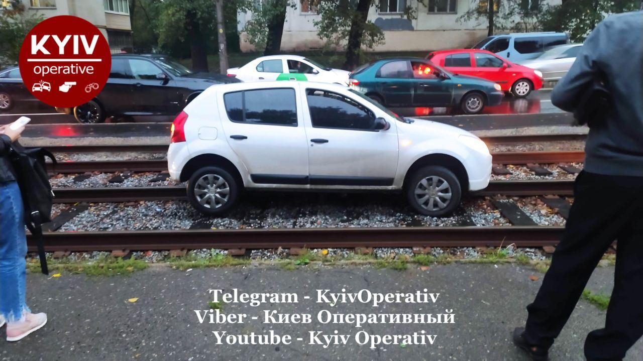 У Києві на вулиці Дегтярівській у четвер, 8 жовтня, водій заїхав на трамвайну колію та застряг там, заблокувавши рух трамваїв.