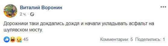 У мережі одразу же почали обговорювати ремонт шляхопроводу, вказавши на дивний збіг, зазначивши особливість столичних комунальників, які ремонтні роботи почали в дощову погоду.