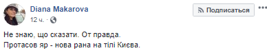"Не знаю, що сказати. От правда. Протасов яр - нова рана на тілі Києва", - пише активістка Діана Макарова.