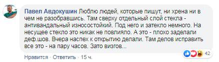 "Кличко на відкритті мосту: Це унікальне скло. Під нього затекла вода, але ми його обов'язково поміняємо "... Завіса", - написала в Facebook керівник прес-центру УНІАН Ірина Головатенко.