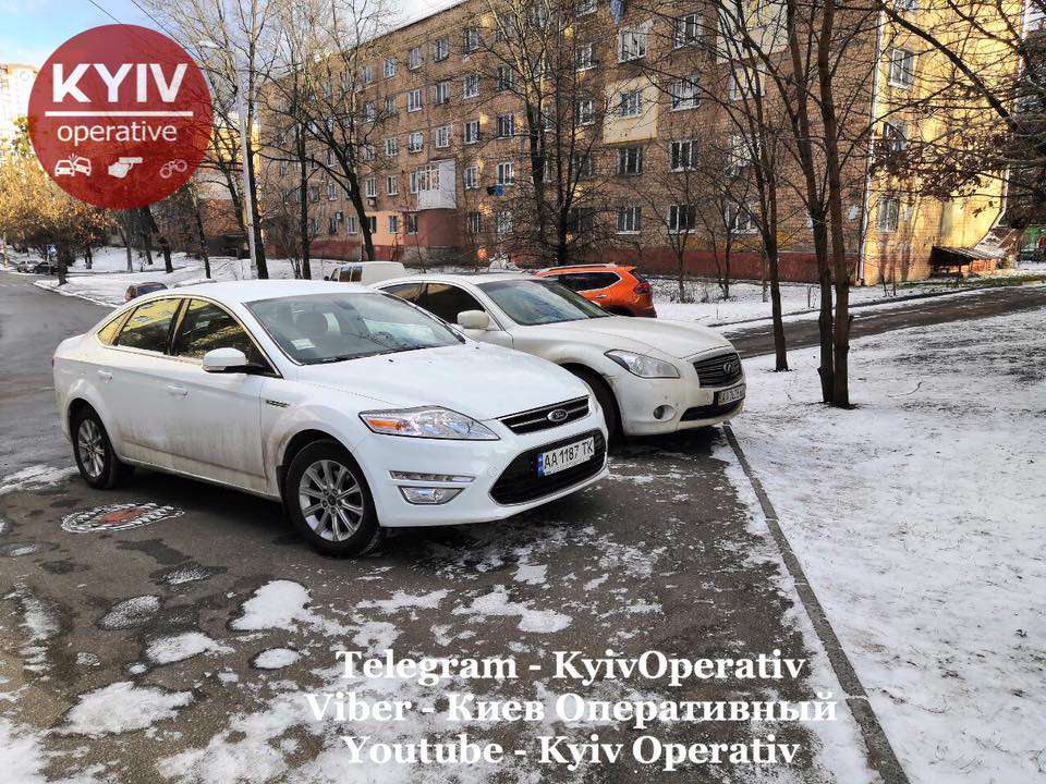У Голосіївському районі Києва дві іномарки припаркувалися на тротуарі та заважали пересуватися пішоходам.